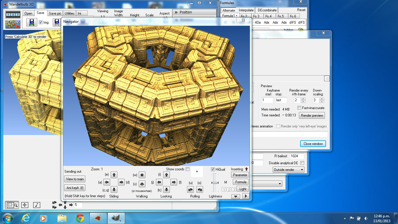 Antes de hacer una animación hay que crear un fractal en 3d en el programa Mandelbulb 3D, cualquiera es bueno para experimentar, por ejemplo: