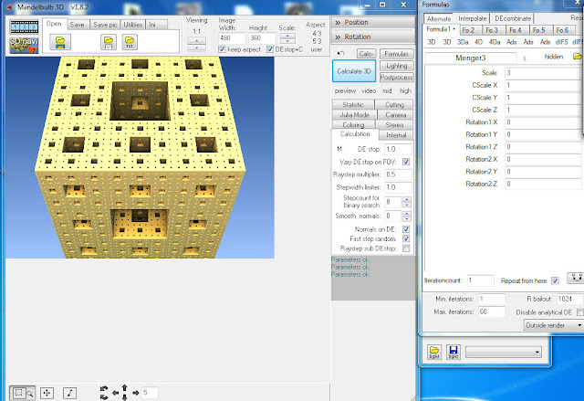 Regresar a la ventana principal y hacer algun cambio al fractal, en este caso se aplica una rotacion al cubo de menger: